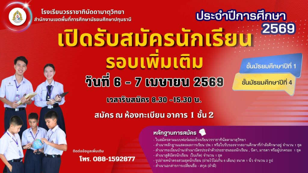 ขอแสดงความยินดีกับนักเรียนโรงเรียนวรราชาทินัดดามาตุวิทย […]