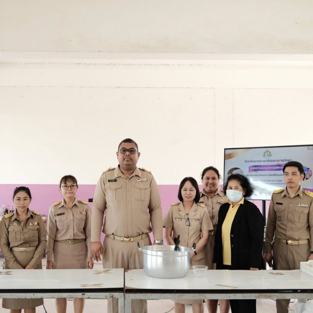 เมื่อวันที่ 25 สิงหาคม 2568 โรงเรียนวรราชาทินัดดามาตุวิทยา โดยการมอบหมายของนายธัชวรรธน์ เจริญภิรมย์บวร ผู้อำนวยการโรงเรียน ให้กลุ่มสาระการเรียนรู้การงานอาชีพจัดกิจกรรมการอบรมเชิงปฏิบัติการทักษะอาชีพสำหรับนักเรียน ภายใต้โครงการ “1 อำเภอ 1 โรงเรียนคุณภาพ” โดยมีนักเรียนเข้าร่วมจำนวน 40 คน เพื่อส่งเสริมทักษะอาชีพ ทักษะชีวิต และการคิดเชิงนวัตกรรม ที่สอดคล้องกับหมวดผลลัพธ์ องค์ประกอบที่ 5 ตามนโยบาย โดยได้รับเกียรติจาก นายธัชวรรธน์ เจริญภิรมย์บวร ผู้อำนวยการโรงเรียนเป็นประธาน และคณะผู้บริหารร่วมในพิธี และได้รับความร่วมมือจากวิทยากรท้องถิ่น มาถ่ายทอดองค์ความรู้และทักษะอย่างเข้มข้น