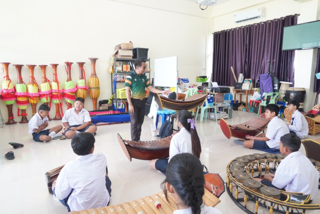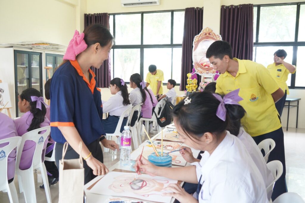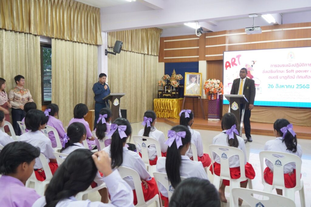 วันที่ 26 สิงหาคม 2568 กลุ่มสาระการเรียนรู้ศิลปศึกษา โรงเรียนวรราชาทินัดดามาตุวิทยา ได้จัดกิจกรรม “อบรมส่งเสริมทักษะ Soft Power ด้านศิลปะ ดนตรี และนาฏศิลป์” ณ ห้องประชุมปาริชาต โดยได้รับเกียรติจาก นายธัชวรรธน์ เจริญภิรมย์บวร ผู้อำนวยการโรงเรียน เป็นประธานในพิธีเปิด พร้อมด้วยคณะผู้บริหาร และคณะครู ร่วมเป็นเกียรติในพิธี ในโอกาสนี้ นายภูมิภพ อนันตรักษ์ หัวหน้ากลุ่มสาระการเรียนรู้ศิลปะ ได้กล่าวรายงานถึงวัตถุประสงค์ของกิจกรรม ซึ่งมุ่งเน้นการพัฒนาทักษะเชิงปฏิบัติในด้านดนตรีไทย ดนตรีสากล นาฏศิลป์ และทัศนศิลป์ เสริมสร้างคุณค่าทางวัฒนธรรมไทยควบคู่กับการบ่มเพาะสมรรถนะสำคัญในศตวรรษที่ 21 พร้อมทั้งเปิดโอกาสให้นักเรียนได้แสดงออกอย่างสร้างสรรค์ และเชื่อมโยง Soft Power ไปสู่การยกระดับภาพลักษณ์ของประเทศ กิจกรรมในครั้งนี้แบ่งออกเป็น 4 กลุ่มทักษะ ได้แก่ กลุ่มที่ 1 ทักษะดนตรีสากล กลุ่มที่ 2 ทักษะดนตรีไทย กลุ่มที่ 3 ทักษะนาฏศิลป์ไทย กลุ่มที่ 4 ทักษะทัศนศิลป์ โดยได้รับเกียรติจากวิทยากรผู้ทรงคุณวุฒิและมากด้วยความสามารถ อันได้แก่ คุณปณต รอดกลาง, คุณวริษฐา จิตบรรจง, คุณปัญณภพ ทองภิลา, คุณฉัตรทราวดี ปานเพ็ง และคุณอติคุณ แต่งงาม มาถ่ายทอดองค์ความรู้และประสบการณ์ที่ทรงคุณค่าให้แก่นักเรียน โรงเรียนวรราชาทินัดดามาตุวิทยา มุ่งหวังว่าการจัดอบรมในครั้งนี้ จะเป็นเวทีสำคัญที่ช่วยสร้างแรงบันดาลใจ และร่วมกันสืบสานอัตลักษณ์ความเป็นไทยให้คงอยู่คู่สังคมไทยอย่างยั่งยืนต่อไป