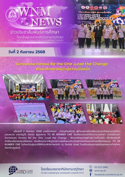 เมื่อวันที่ 2 กันยายน 2568 นายธัชวรรชน์ เจริญภิรมย์บวร ผู้อำนวยการโรงเรียนวรราชาทินัดดามาตุวิทยามอบหมาย นายณัฐวีร์ จ้อยรุ่ง ผู้ดูแลงาน TO BE NUMBER ONE โรงเรียนวรราชาทินัดดามาตุวิทยา นำนักเรียนเข้ารับการอบรม กิจกรรม Be the One ,Lead the Change : พัฒนาศักยภาพผู้นำสู่ความเป็นหนึ่ง เพื่อส่งเสริมให้นักเรียนมีคุณธรรมจริยธรรมส่งเสริมบทบาทในฐานะเยาวชนต้นแบบห่างไกลยาเสพติดและสร้างเครือข่ายชมรม TO BE NUMBER ONE ในจังหวัดปทุมธานีให้มีประสิทธิภาพต่อไป ณ อินทนิล ฮอลล์ โรงเรียนธรรมศาสตร์คลองหลวงวิทยาคมจังหวัดปทุมธานี