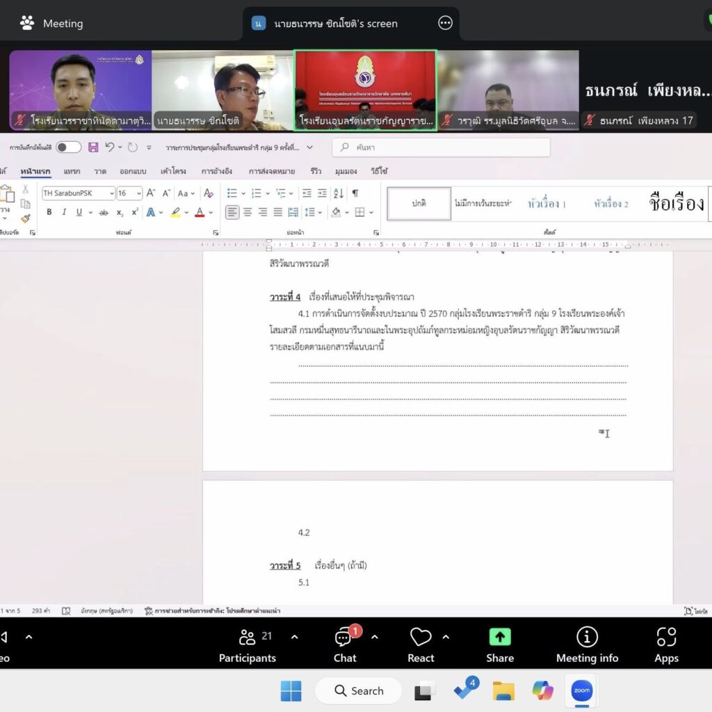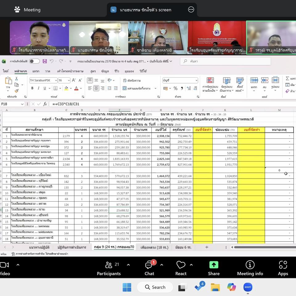 วันที่ 10 พฤศจิกายน 2568 นายธัชวรรธน์ เจริญภิรมย์บวร ผู้อำนวยการโรงเรียนวรราชาทินัดดามาตุวิทยา มอบหมาบให้ นายจิรัตน์ แพ่งศรี รองผู้อำนวยการกลุ่มบริหารงบประมาณ นายกฤษณ์ สอนดี ผู้ช่วยผู้อำนวยการกลุ่มบริหารงบประมาณ นายเอกรินทร์ โชคสัมฤทธิ์ นายณัฐชนน เจริญรอย งานนโยบายและแผนงาน เข้าร่วมประชุมการรับฟังการชี้แจงการจัดทำคำของบประมาณรายจ่ายประจำปีงบประมาณ พ.ศ. 2570 งบลงทุน ค่าครุภัณฑ์ ที่ดินและสิ่งก่อสร้าง กลุ่มโรงเรียนพระราชดำริ กลุ่มที่ 9 โรงเรียนพระราชดำริในพระอุปถัมภ์พระเจ้าวรวงศ์เธอ พระองค์เจ้าโสมสวลี กรมหมื่นสุทธนารีนาถ และในทูลกระหม่อมหญิงอุบลรัตนราชกัญญา สิริวัฒนาพรรณวดี ผ่านระบบออนไลน์