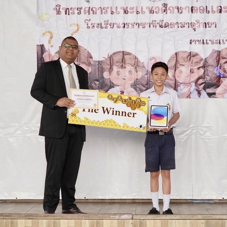 นายธัชวรรธน์ เจริญภิรมย์บวร ผู้อำนวยการโรงเรียนวรราชาทินัดดามาตุวิทยา มอบหมายให้กลุ่มสาระการเรียนรู้ภาษาต่างประเทศจัดการแข่งขัน Spelling Bee Competition 2025 ซึ่งเป็นกิจกรรมที่ส่งเสริมการแสดงทักษะความรู้ความสามารถทางด้านภาษาอังกฤษ ในระหว่างวันที่ 8-17 ธันวาคม 2568 และนในวันที่ 14 มกราคม 2569 กลุ่มสาระการเรียนรู้ภาษาต่างประเทศ จัดพิธีมอบรางวัลให้แก่นักเรียนที่ได้รับรางวัลในกิจกรรมโครงการ Spelling Bee Competition 2025 โดยมีนายธัชวรรธน์ เจริญภิรมย์บวร ผู้อำนวยการโรงเรียนวรราชาทินัดดามาตุวิทยา เป็นประธานในพิธี และให้เกียรติเป็นผู้มอบรางวัลให้แก่นักเรียนในครั้งนี้ กลุ่มสาระการเรียนรู้ภาษาต่างประเทศ ขอแสดงความยินดีกับนักเรียนทุกคนที่ได้รับรางวัลและขอชื่นชมในความกล้าแสดงออกและความพยายามของทุกคน
