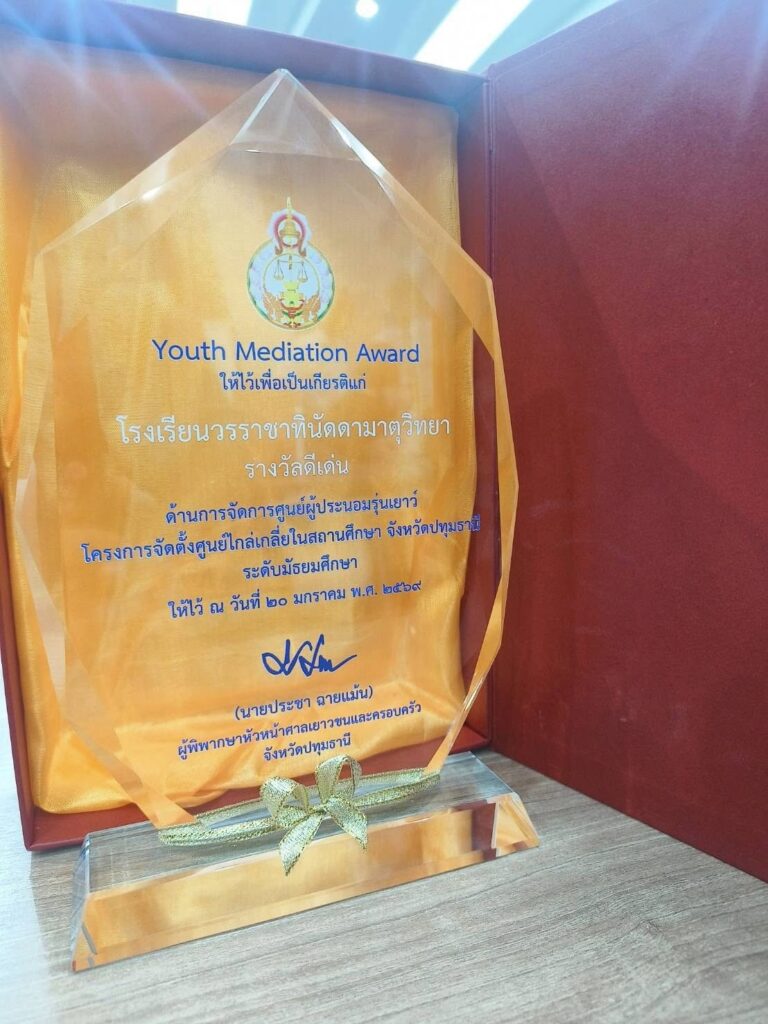 โรงเรียนวรราชาทินัดดามาตุวิทยาเข้าร่วมอบรมกิจกรรมต่อยอดศูนย์ไกล่เกลี่ยสถานศึกษา และรับรางวัลศูนย์ประนอมรุ่นเยาว์ดีเด่น เมื่อวันที่ 20 มกราคม 2569 นายธัชวรรธน์ เจริญภิรมย์บวร ผู้อำนวยการโรงเรียนวรราชาทินัดดามาตุวิทยา ได้มอบหมายให้คณะครูผู้ดูแลและผู้ประสานงาน ศูนย์ประนอมรุ่นเยาว์ นำนักเรียนเข้ารับการอบรมในหัวข้อ “กิจกรรมต่อยอดศูนย์ไกล่เกลี่ยสถานศึกษา ประจำปีการศึกษา 2568” ภายใต้โครงการของ ศาลเยาวชนและครอบครัวจังหวัดปทุมธานี การอบรมดังกล่าวจัดขึ้นเพื่อพัฒนาศักยภาพการดำเนินงานของศูนย์ไกล่เกลี่ยสถานศึกษา เสริมสร้างทักษะด้านการประนอมข้อพิพาท การอยู่ร่วมกันอย่างสันติ และส่งเสริมการแก้ไขปัญหาความขัดแย้งในสถานศึกษาอย่างสร้างสรรค์ ในโอกาสนี้ โรงเรียนวรราชาทินัดดามาตุวิทยา ยังได้รับ โล่รางวัลศูนย์ประนอมรุ่นเยาว์ ด้านการบริหารจัดการ “ดีเด่น” ประจำปีการศึกษา 2568 จากศาลเยาวชนและครอบครัวจังหวัดปทุมธานี ซึ่งนับเป็นเกียรติประวัติและความภาคภูมิใจของสถานศึกษาเป็นอย่างยิ่ง