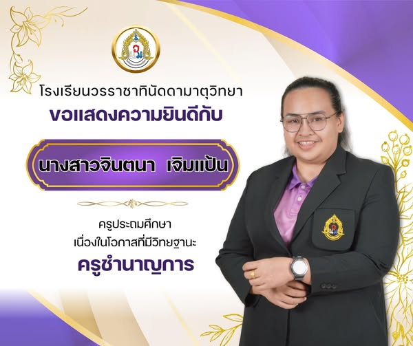 ขอแสดงความยินดี 2 กุมภาพันธ์ 25692 กุมภาพันธ์ 2026 WNM Admin ข่าวประชาสัมพันธ์ โรงเรียนวรราชาทินัดดามาตุวิทยา ขอแสดงความยินดีกับนางสาวจินตนา เจิมแป้น ครูประถมศึกษา เนื่องในโอกาสที่มีวิทยฐานะ ครูชำนาญการ WNM Admin